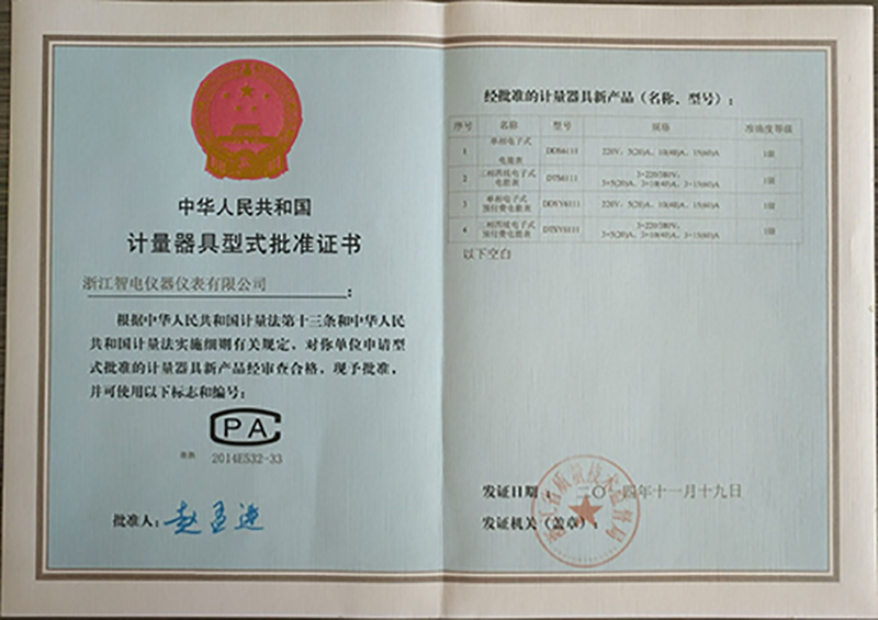 計量器具型式批準證書