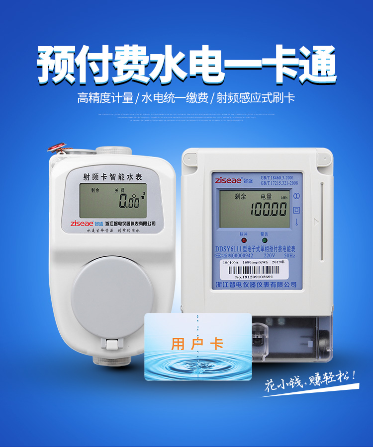我公司生產的智能水表與電能表實現一卡通,用戶只需一張卡,即可同時管理家中所用的電表、水表。